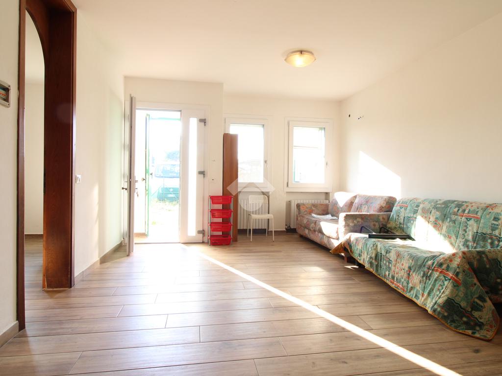 DESCRIZIONE DELL'IMMOBILE: La porzione di ville che proponiamo gode di un ingresso indipendente ed è disposta su due piani fuori terra. Varcato l'ingresso ci accoglie la zona giorno molto ampia con separata la cucina e sala da pranzo. Di seguito troviamo un primo bagno finestrato e due camere da letto.