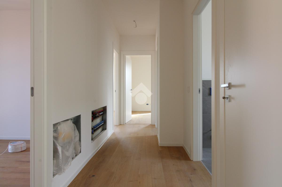 Altre caratteristiche sono l'impianto di riscaldamento radiante a pavimento a bassa temperatura il parquet in rovere spazzolato e gli infissi con triplo vetro di nuova generazione, performanti dal punto di vista delle prestazioni climatiche.